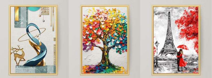Telusuri galeri desain atau koleksi seniman pilihan kami. Pilih visual yang sesuai dengan ruang atau tujuan Anda.