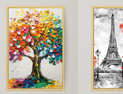Telusuri galeri desain atau koleksi seniman pilihan kami. Pilih visual yang sesuai dengan ruang atau tujuan Anda.